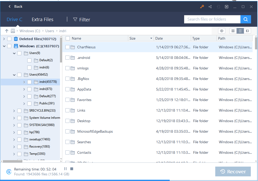 Semua file dan folder yang sudah dibuang atau terbuang nanti akan tampil di sini. Komputernya di scanning dulu sama software ini.