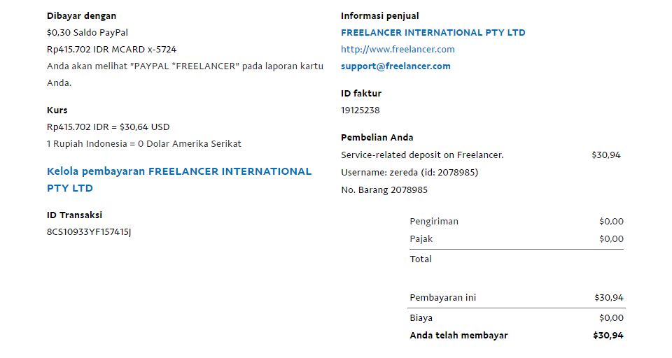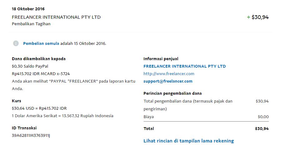 Oihya kan ada kata-kata Freelancer.com, saya langsung buka laptop, koneksi ke internet dan membuka akun paypal saya, jantung saya saat itu sudah berdebar tak karuan karena ini masalah uang..ya..masalah uang di kartu kredit yang seharusnya tidak bisa terdebet kecuali oleh pemiliknya yaitu saya.